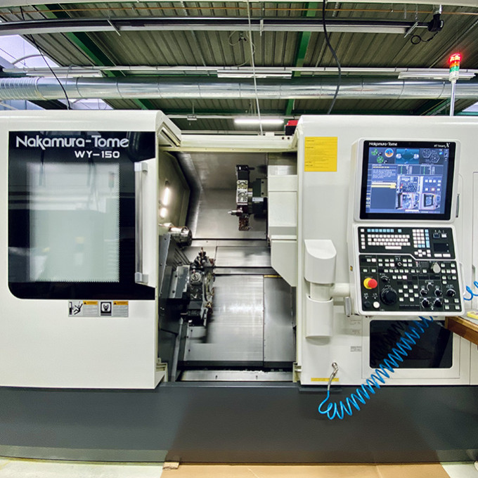 La dernière acquisition en date est le tour Nakamura WY 150. Cette machine haut de gamme de marque japonaise propose un grand nombre de possibilités dans la fabrication de pièces grâce à sa conception bi-broche et bi-tourelle offrant un passage en barre de 20 à 65 mm de diamètre. Sa solidité et sa robustesse en font un outil idéal pour le décolletage de pièces dans tous types de métaux ou plastiques, quelle que soit leur dureté.